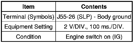(b) Connect the oscilloscope to the power source control ECU terminals specified in the table below and check the waveform.