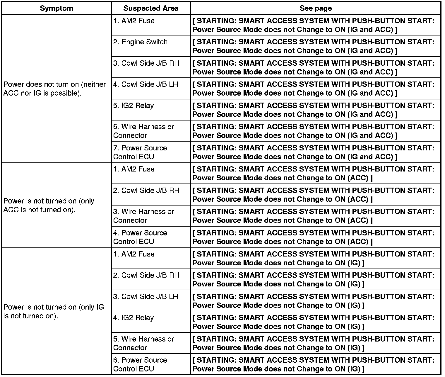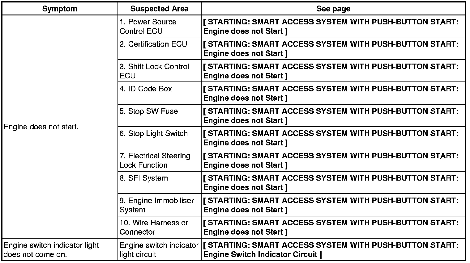 4GR-FSE STARTING: SMART ACCESS SYSTEM WITH PUSH-BUTTON START: PROBLEM SYMPTOMS TABLE
