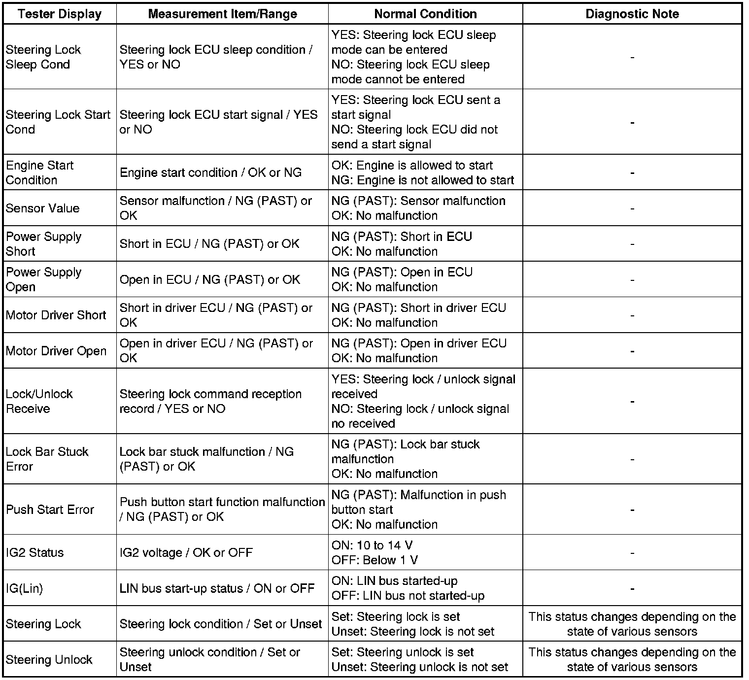 STEERING COLUMN: STEERING LOCK SYSTEM: DATA LIST / ACTIVE TEST