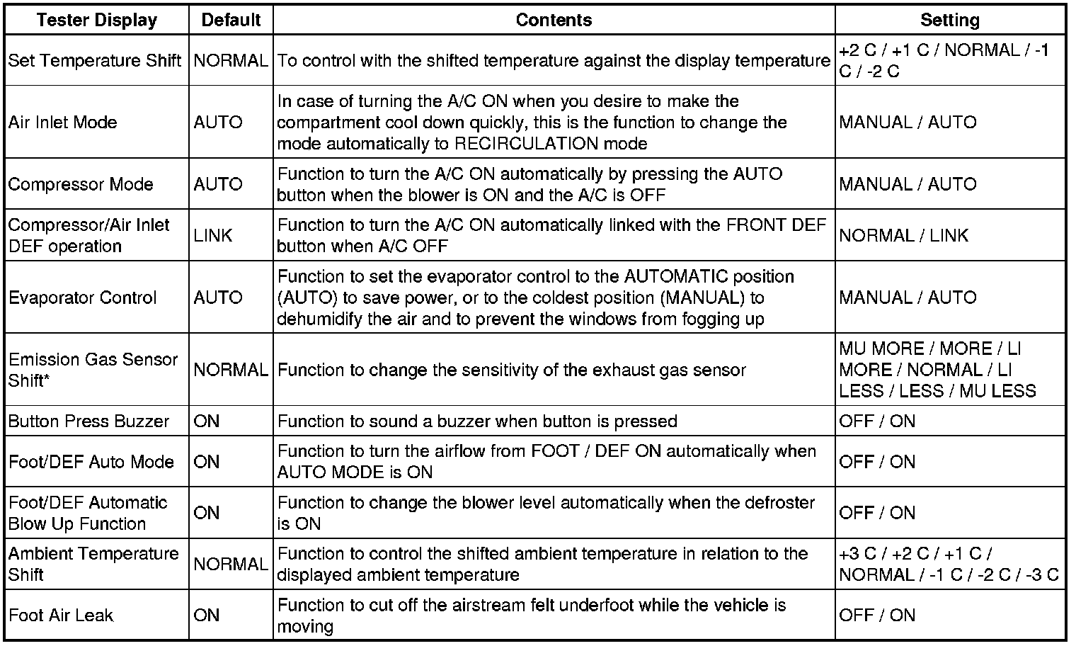 * *1: This function is linked with the power window key-linked function. If the power window key-linked function is set to OFF, the sliding roof key-linked function will not operate even when it is set to ON.