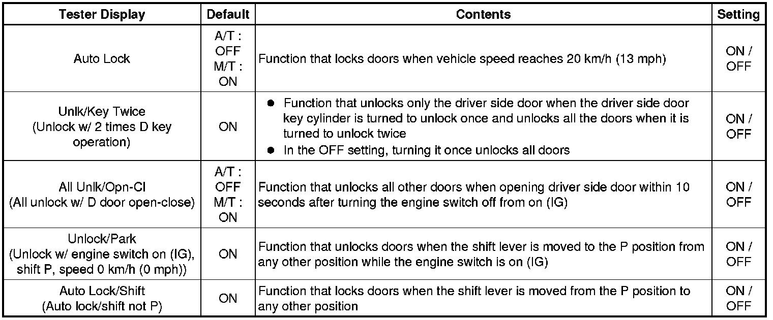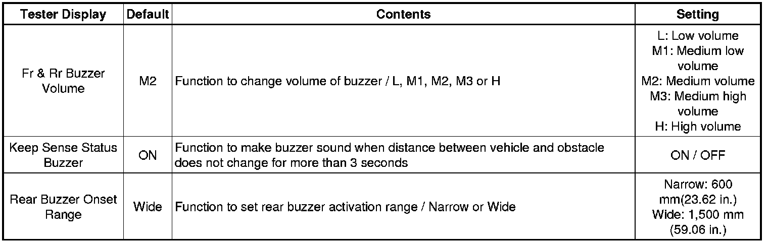 * When either the battery cable or the combination meter connector is disconnected, these buzzers are set on (enabled).