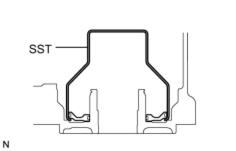 (a) Place SST on the 1st and reverse brake return spring sub-assembly and compress the brake return spring.