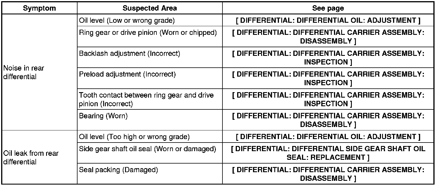 DIFFERENTIAL: DIFFERENTIAL SYSTEM: PROBLEM SYMPTOMS TABLE