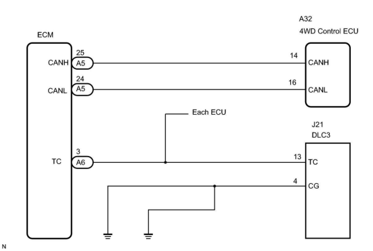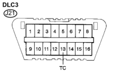 Connecting terminals TC and CG of the DLC3 causes the 4WD control ECU to display a DTC on the multi-information display.