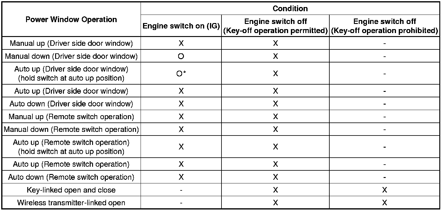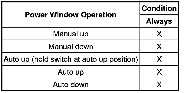 (a) The power window control system prohibits the following power window operations when the pulse sensor for the jam protection function has problems and the window position or the learned value is abnormal.