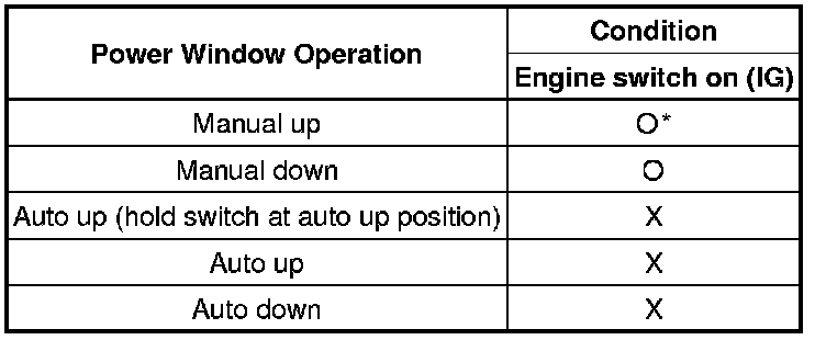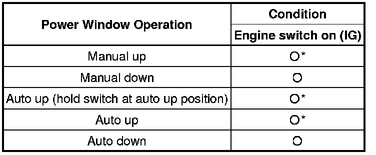 * *: Jam protection can operate and window reverses upon reaching the fully closed position