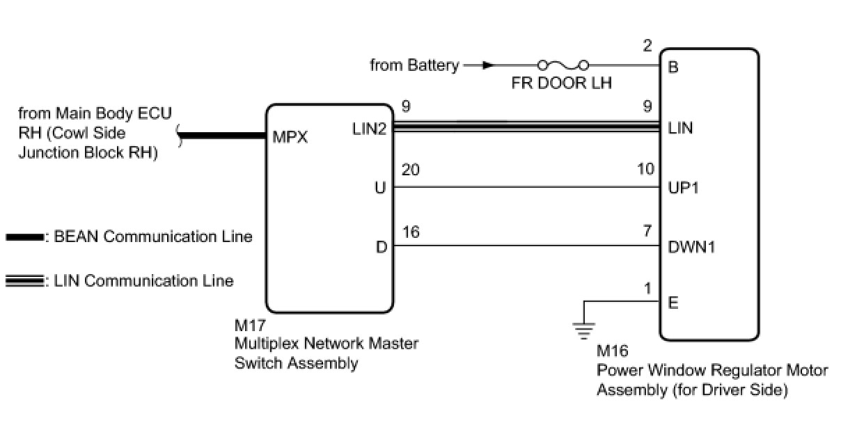 * The power window control system uses a multiplex communication system (BEAN). Inspect the communication function by following How to Proceed with Troubleshooting How To Proceed With Troubleshooting. Troubleshoot the power window control system after confirming that the communication system is functioning properly.