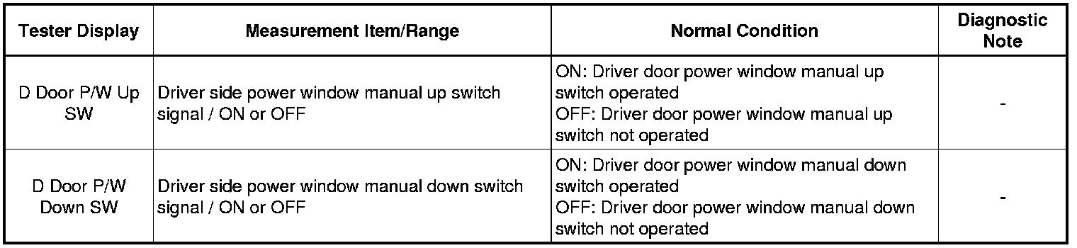 7. CHECK MANUAL UP / DOWN FUNCTION (for Driver Side)