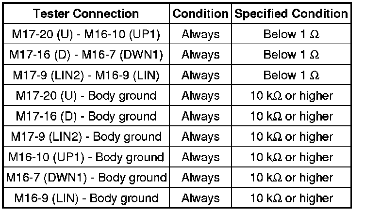 NG -- CHECK HARNESS AND CONNECTOR (MASTER SWITCH - DRIVER SIDE MOTOR)