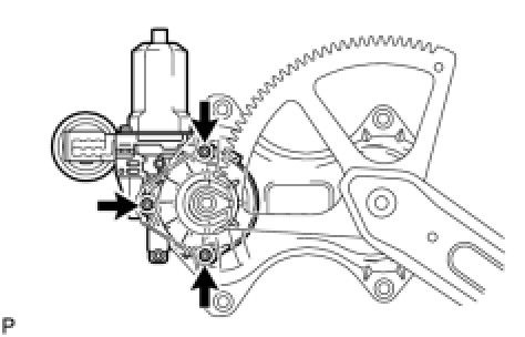 (a) Using a "torx" socket wrench (T25), install the rear power window regulator motor with the 3 screws.