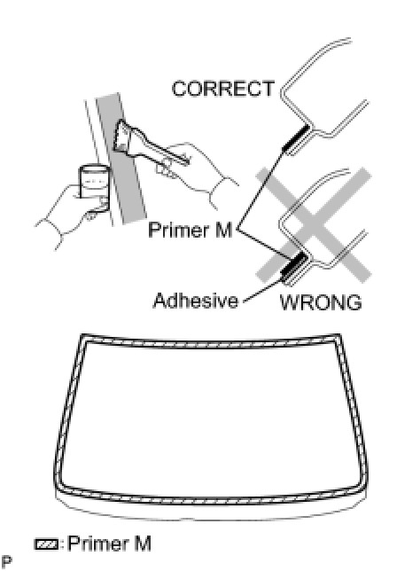 (d) Using a brush or sponge, coat the edge of the glass and the contact surface with Primer G.