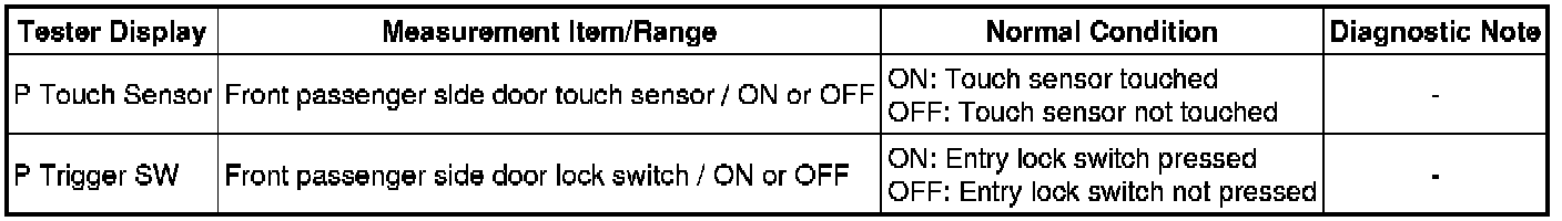 2. READ VALUE USING TECHSTREAM (DOOR OUTSIDE HANDLE)