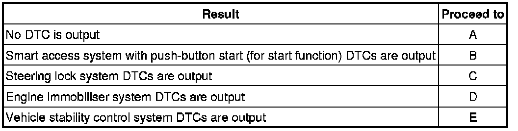 C -- GO TO DIAGNOSTIC TROUBLE CODE CHART (STEERING LOCK SYSTEM) Steering Lock System