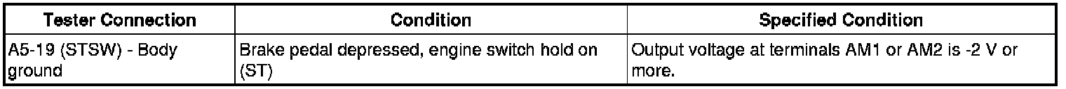 When there is fuel in the fuel tank, the key is inside the vehicle, and the shift lever is in P, check that depressing the brake pedal and pressing the engine switch crank the engine.