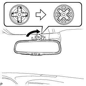 (a) Turn the inner rear view mirror assembly in the direction indicated by the arrow in the illustration to engage the claw and to install the inner rear view mirror assembly.