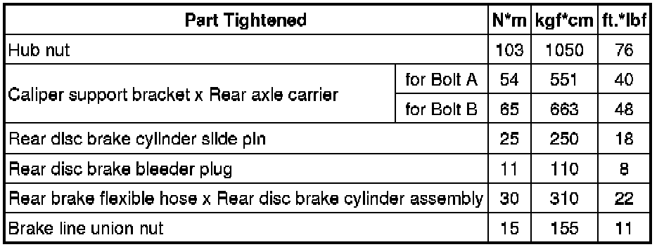 SPECIFICATIONS: BRAKE (REAR): TORQUE SPECIFICATIONS