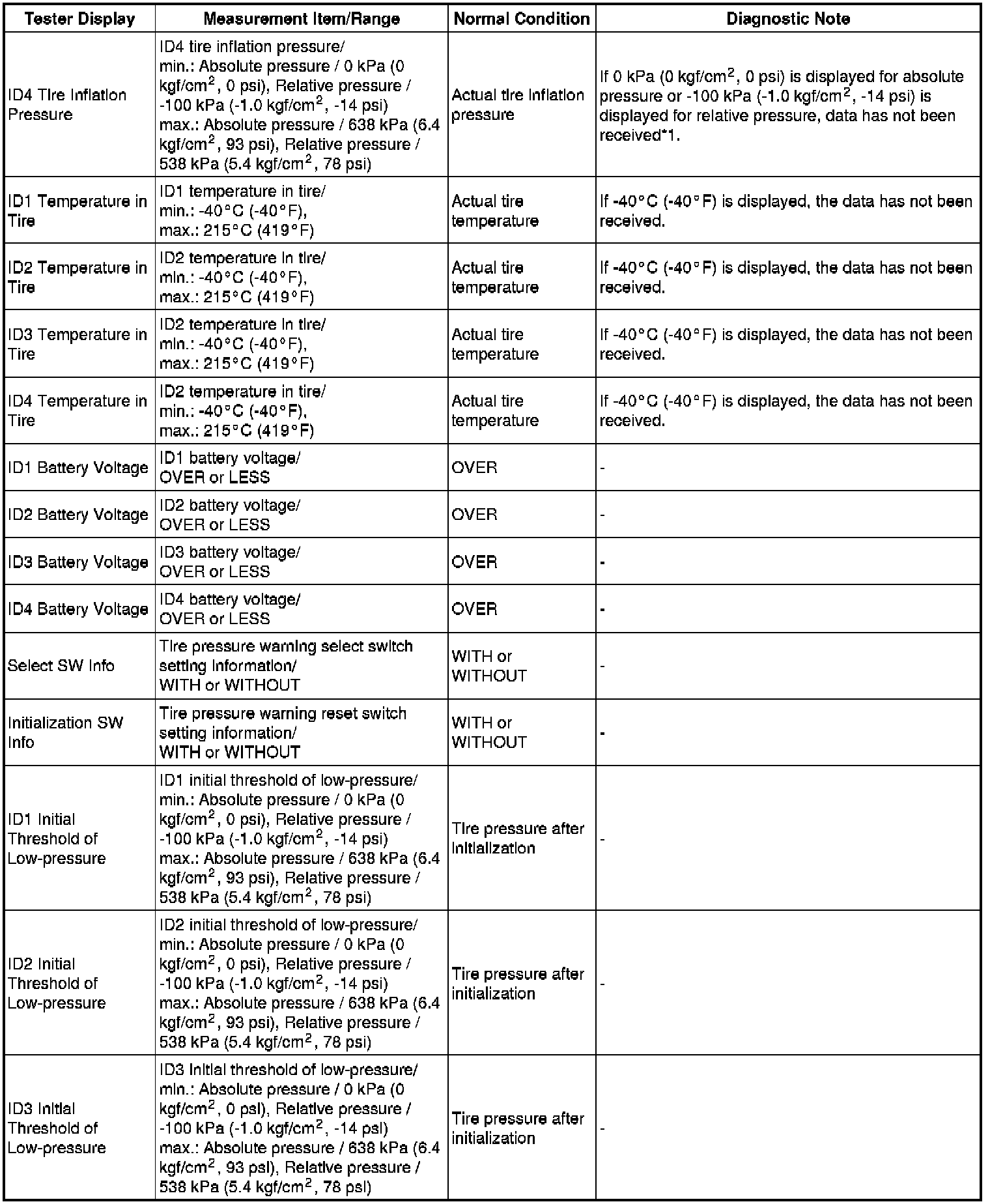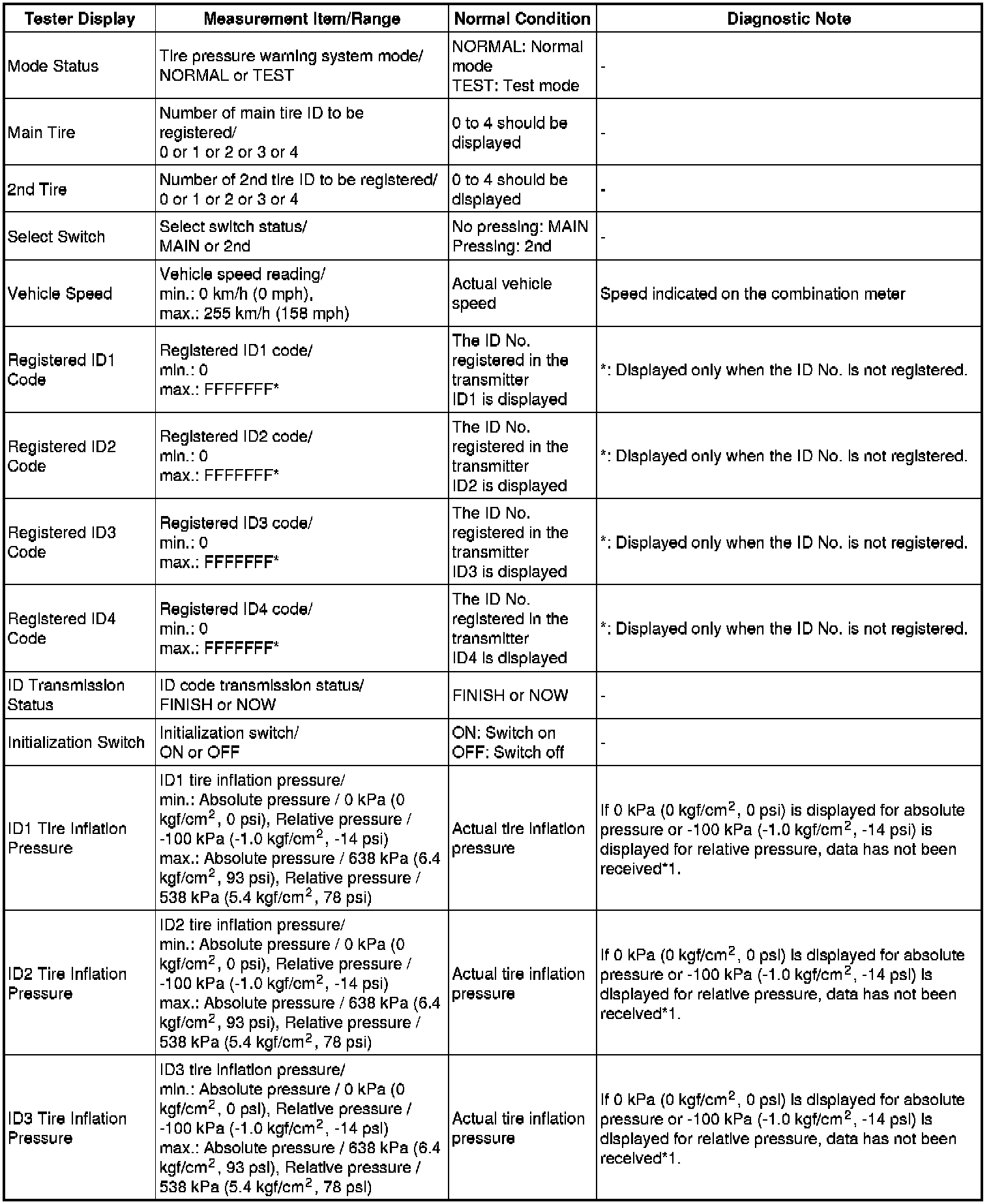 TIRE PRESSURE MONITORING: TIRE PRESSURE WARNING SYSTEM: DATA LIST / ACTIVE TEST