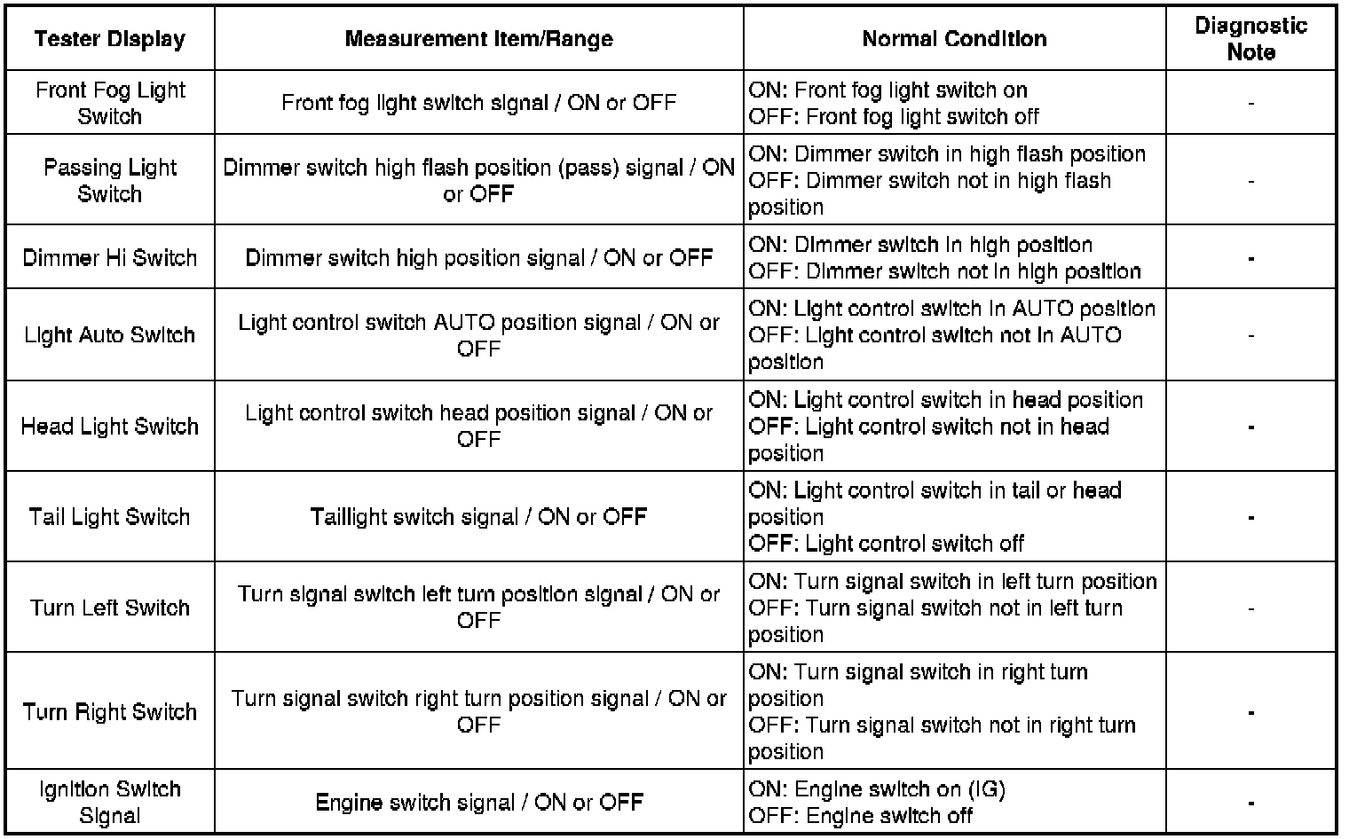 * Turn signal switch position is LH, RH, or Off