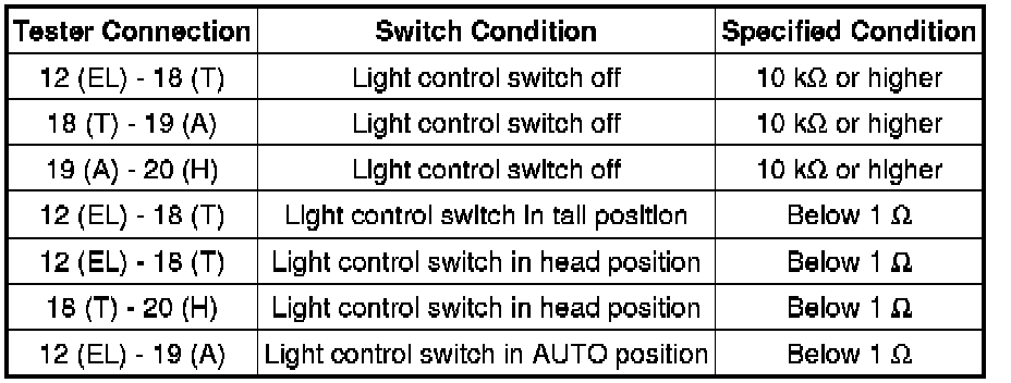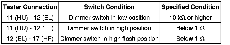 1. INSPECT HEADLIGHT DIMMER SWITCH ASSEMBLY