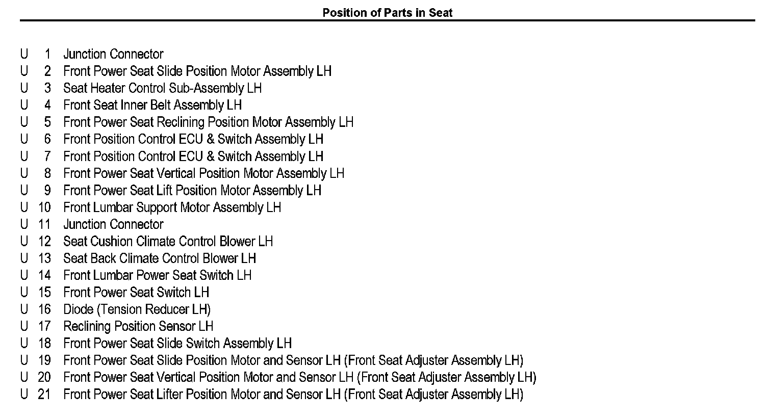 Position Of Parts In Seat: