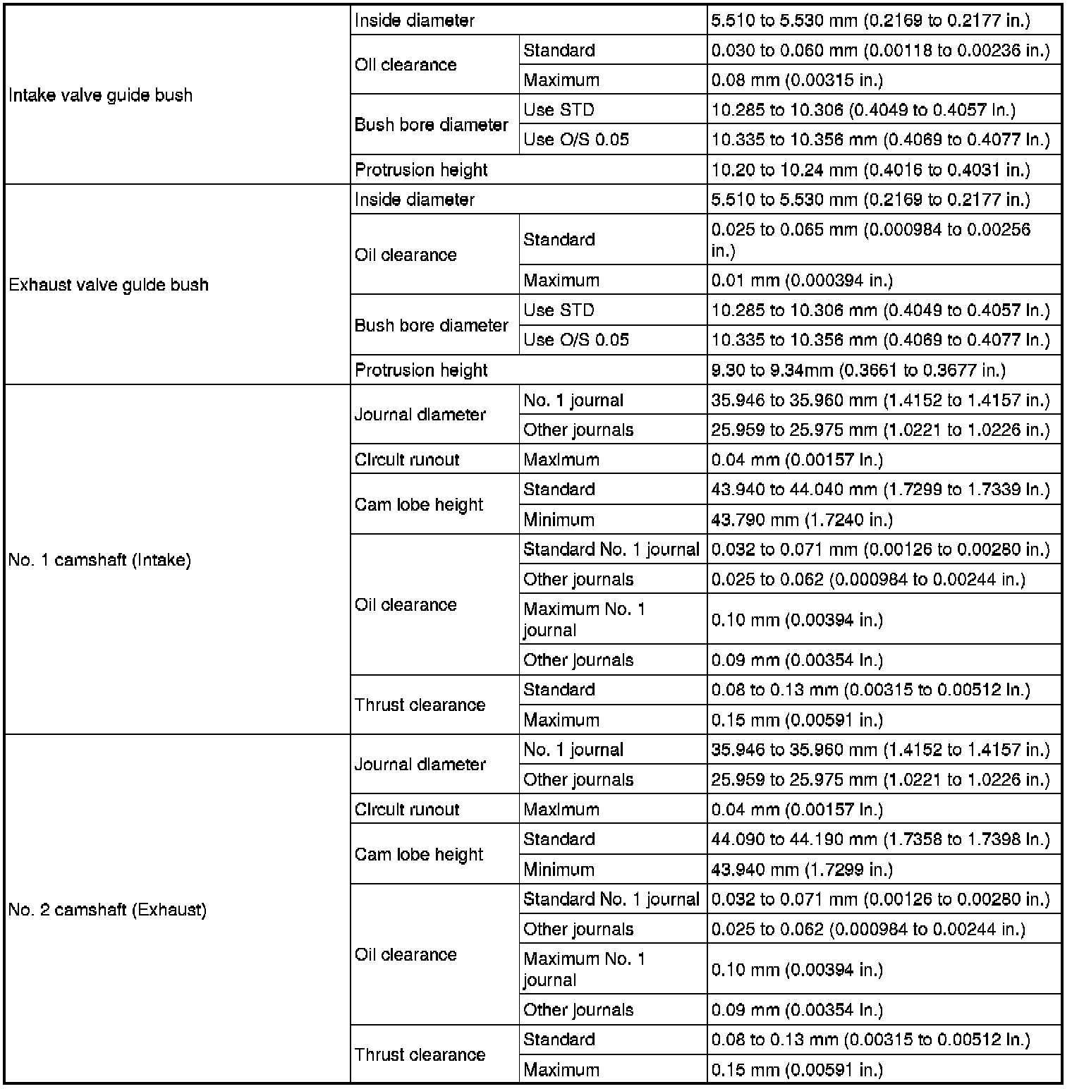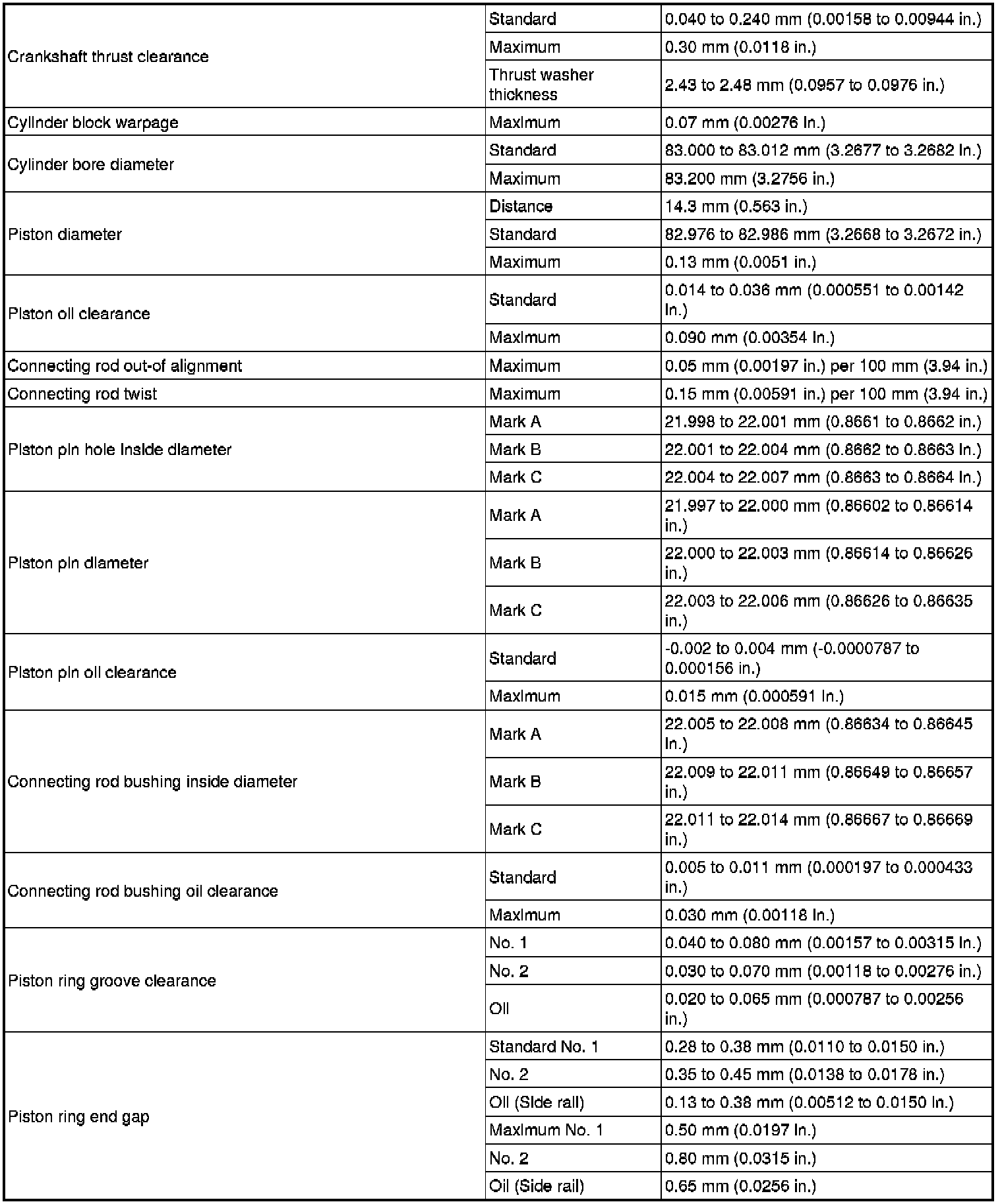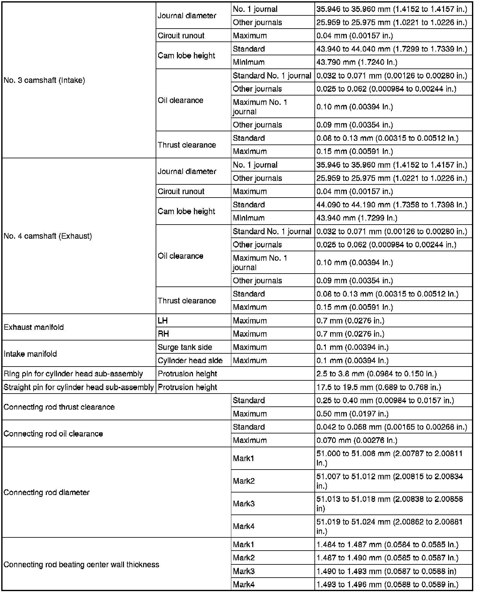 SPECIFICATIONS: 4GR-FSE ENGINE MECHANICAL: SERVICE DATA