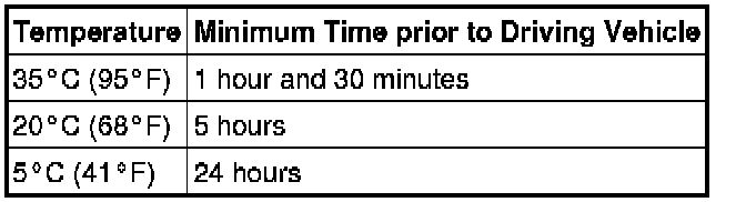 Do not drive the vehicle for the time described in the table below.