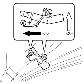 (b) Engage the 2 claws and install the washer nozzle sub-assembly as shown in the illustration.