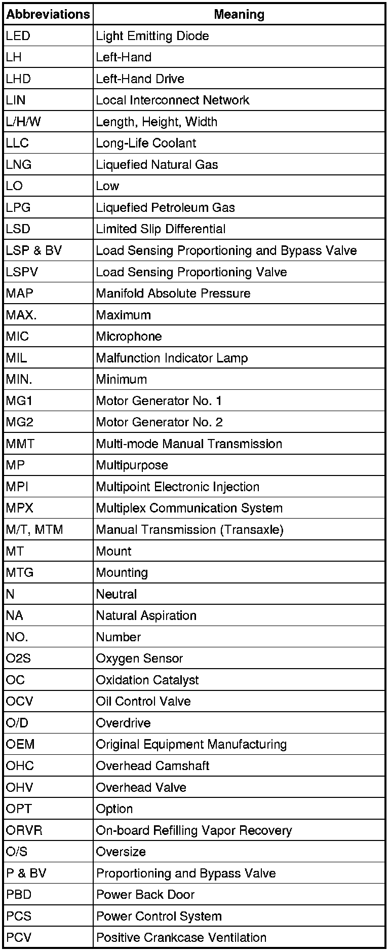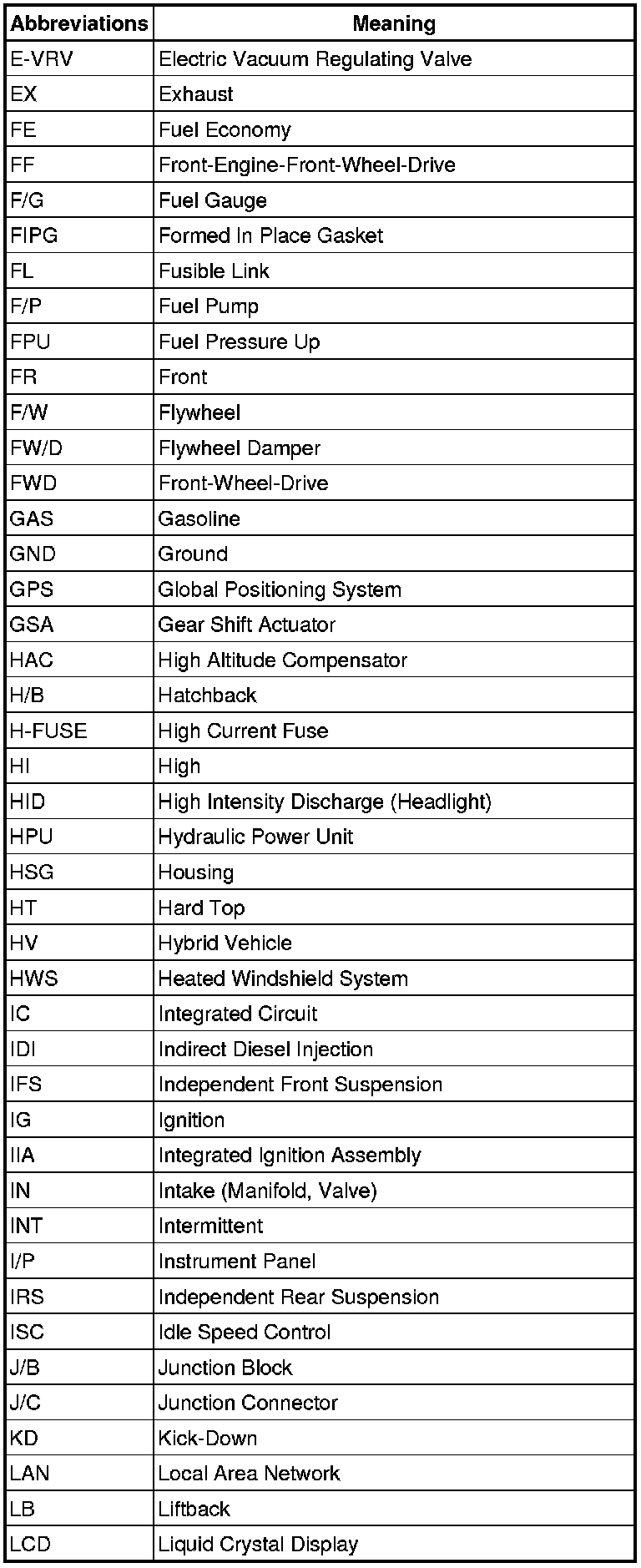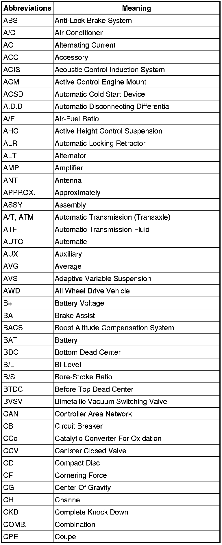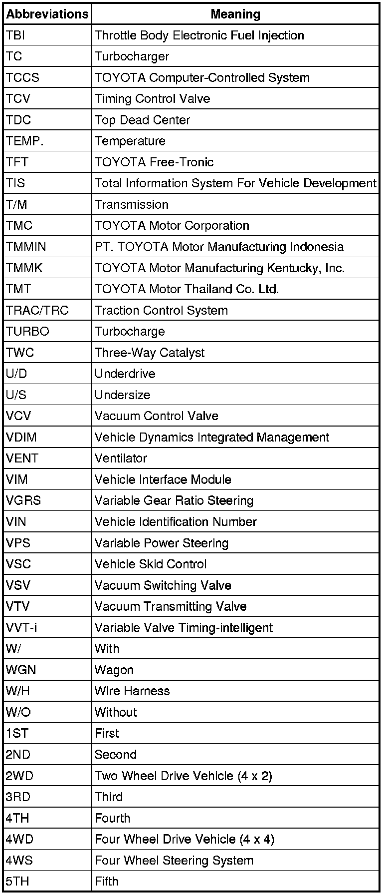 Terms - Abbreviations Used In Service Procedures