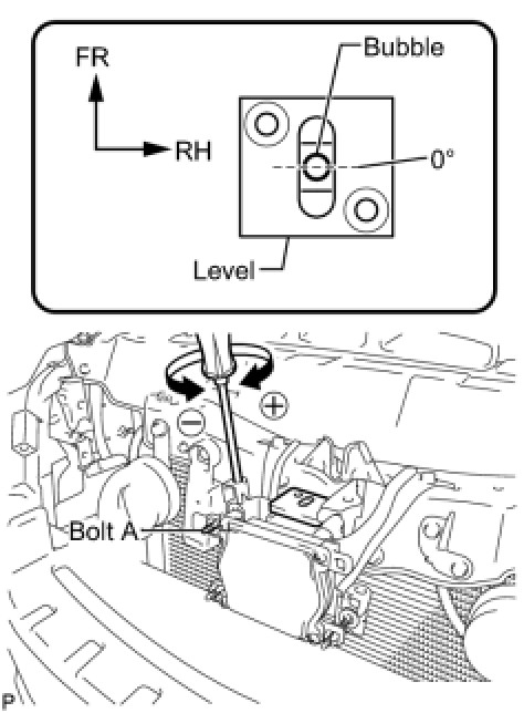 If the bubble is not within the red frame, use a screwdriver to adjust bolt A until the air bubble is within the red frame.