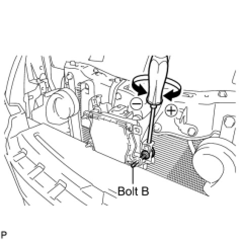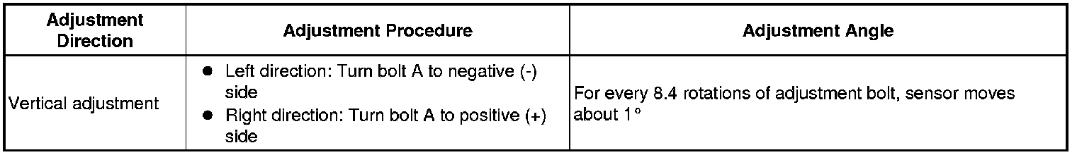 If the axis is not as specified, use a screwdriver to adjust bolt B until the divergence of the radar beam axis is 0°.