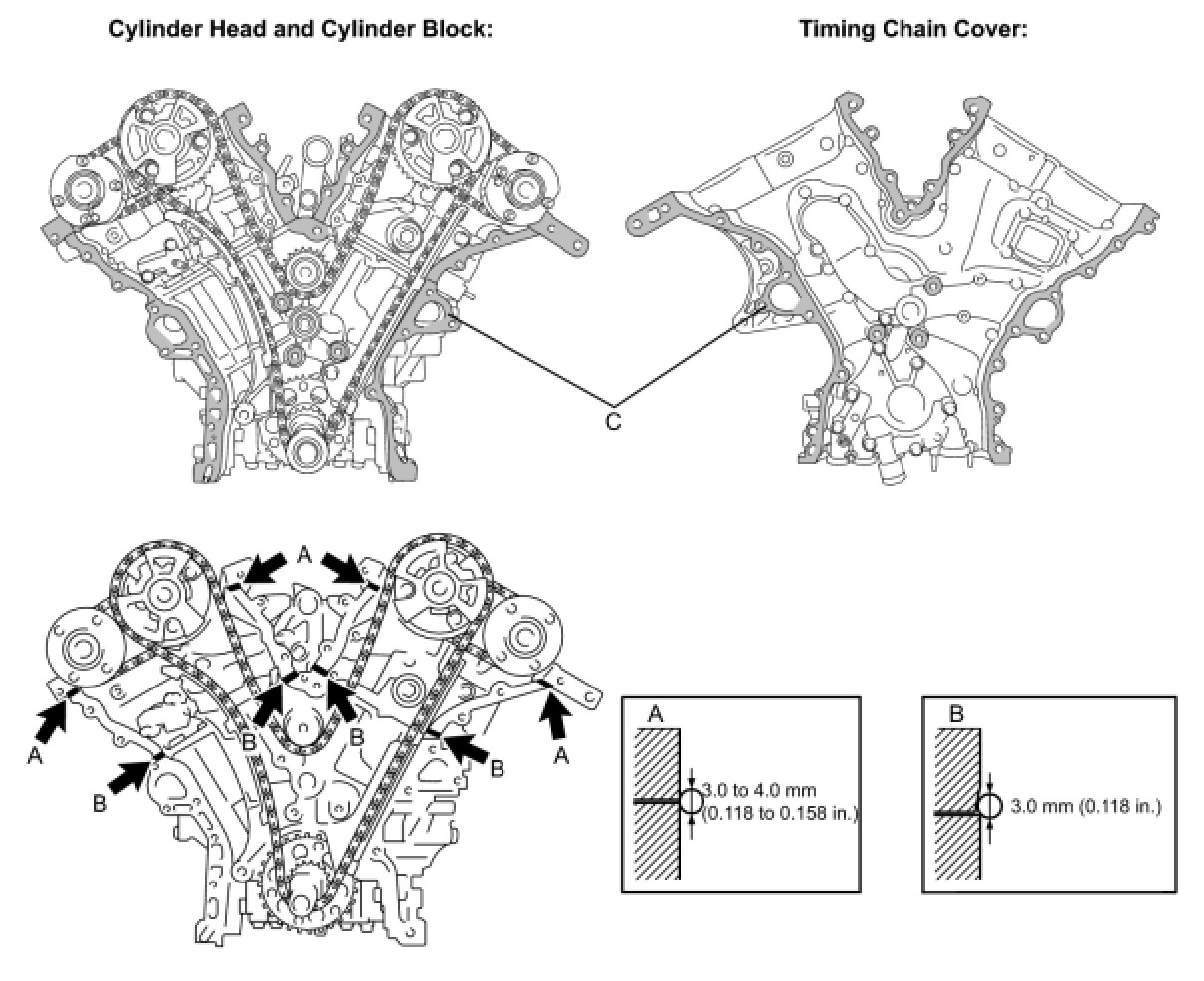 (b) Apply seal packing in a continuous line to the timing chain cover as shown in the following illustration.