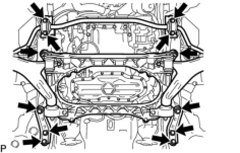 (a) Remove the 2 bolts, then separate the front suspension crossmember sub-assembly from the engine.