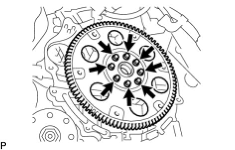 (b) Remove the 8 bolts, front spacer, drive plate and rear spacer.