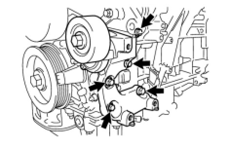 (a) Remove the 5 bolts, then remove the V-ribbed belt tensioner assembly.