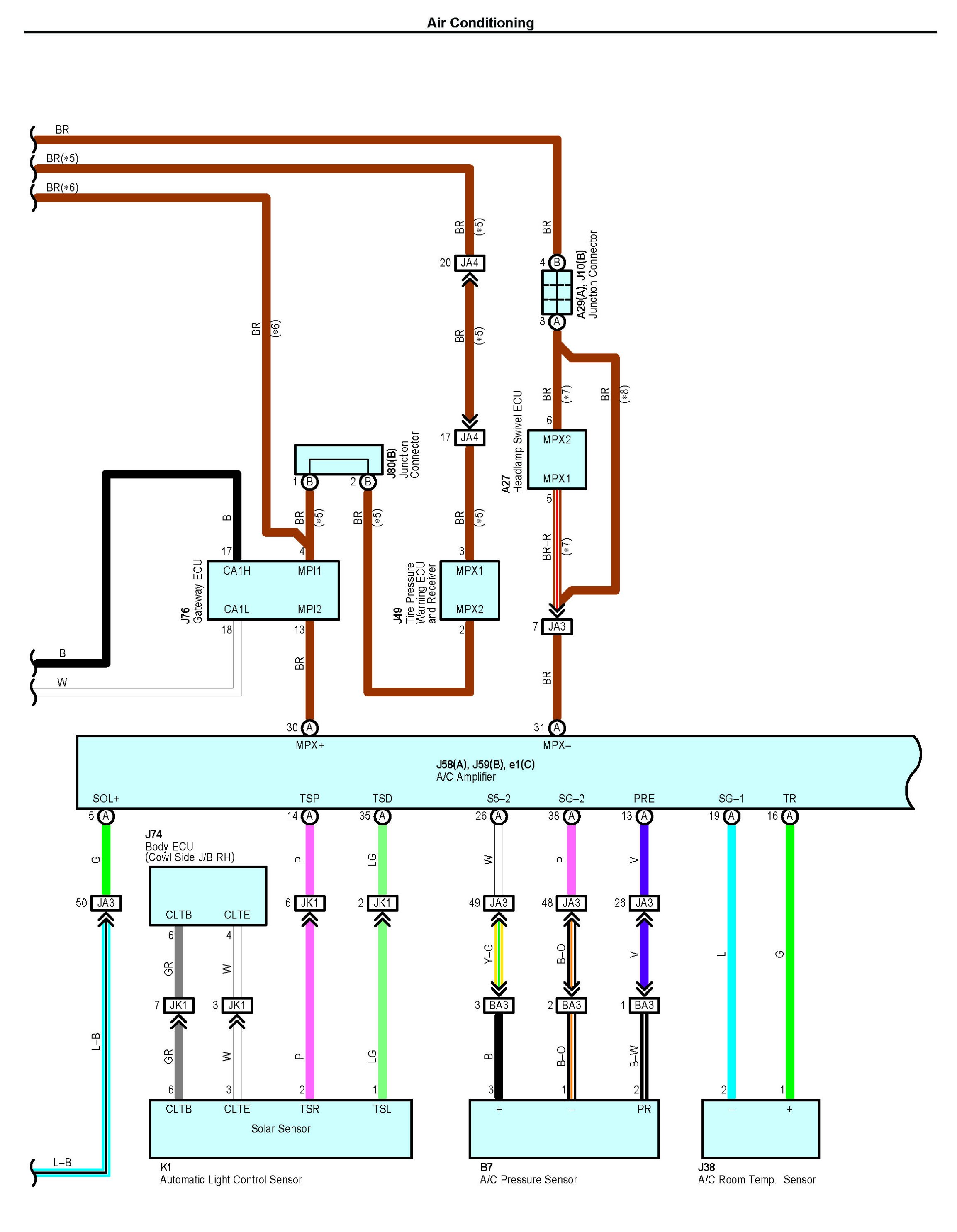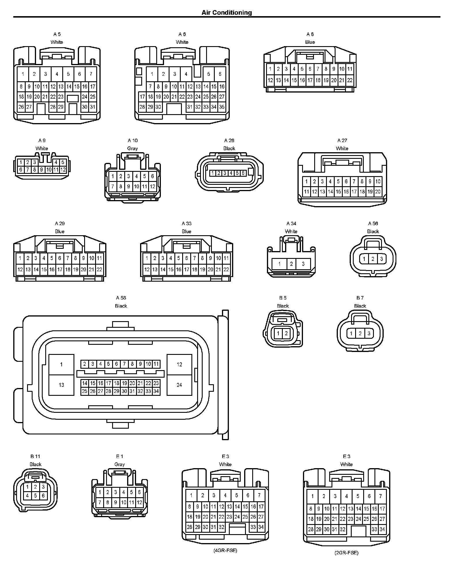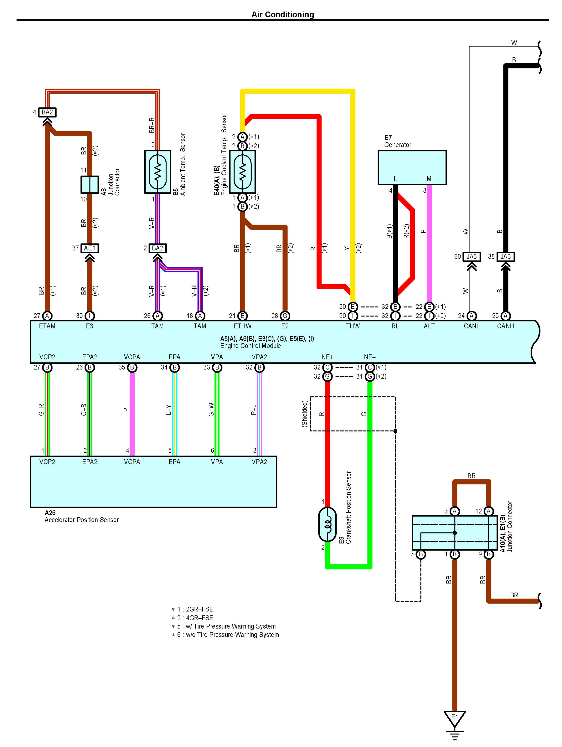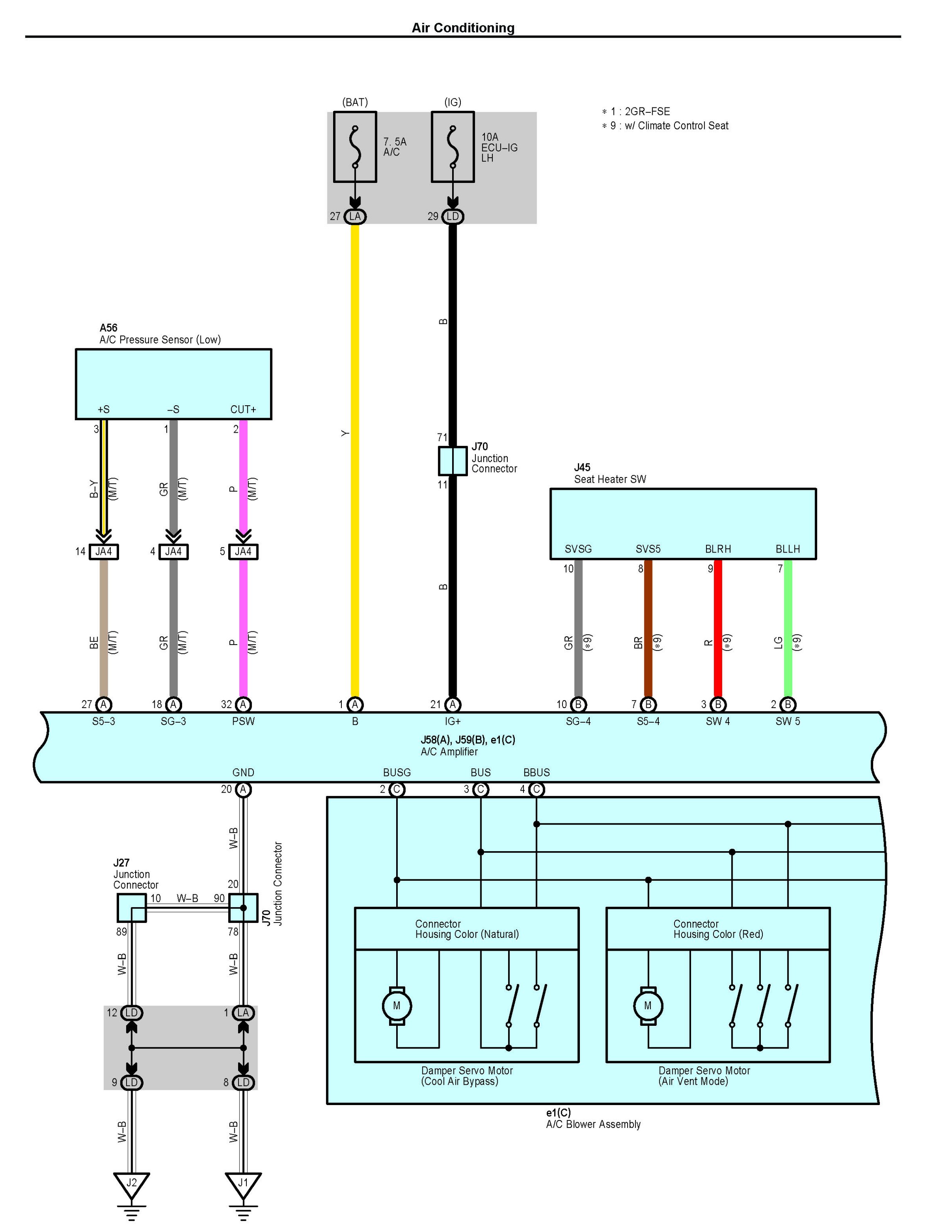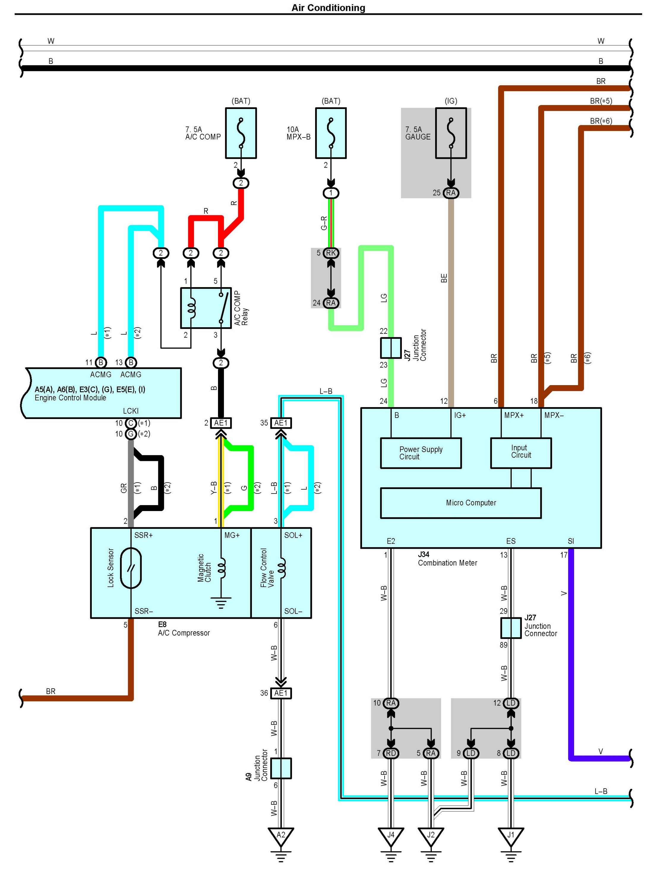 NOTE: Lexus uses a magnetic clutch type compressor as well as a flow control valve type. Both are contained within the diagram. Follow the portion of the digram applicable to the vehicle.