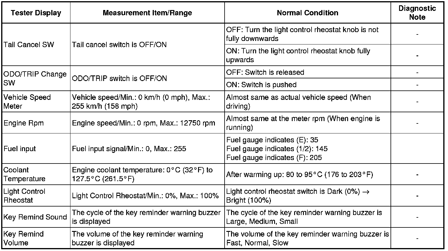 (1) for Combination Meter: Body Electrical / Combination Meter / Data List.