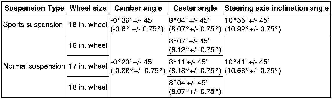 * The maximum tolerance of right and left difference for the camber and caster is 30' (0.5°) or less.