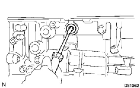 (a) While blowing compressed air into the oil hole, remove the C-2 accumulator piston and the spring.