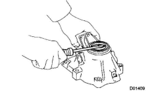 (b) Using a screwdriver with its tip wrapped with tape, pull out the oil pump.
