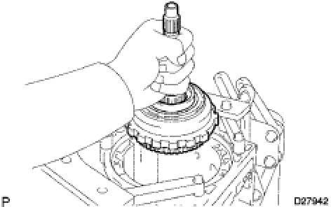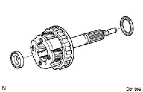 (a) Remove the center planetary gear assembly, the planetary sun gear and the No. 4 thrust bearing race from the transmission case.