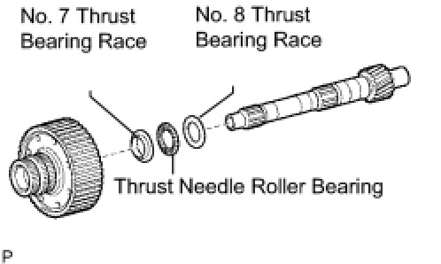 (a) Remove the No. 8 thrust bearing race, the thrust needle roller bearing, the No. 7 thrust bearing race and the planetary ring gear flange from the intermediate shaft.
