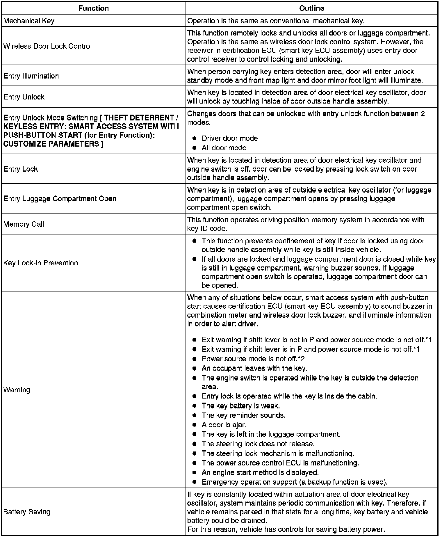 THEFT DETERRENT / KEYLESS ENTRY: SMART ACCESS SYSTEM WITH PUSH-BUTTON START (for Entry Function): SYSTEM DESCRIPTION