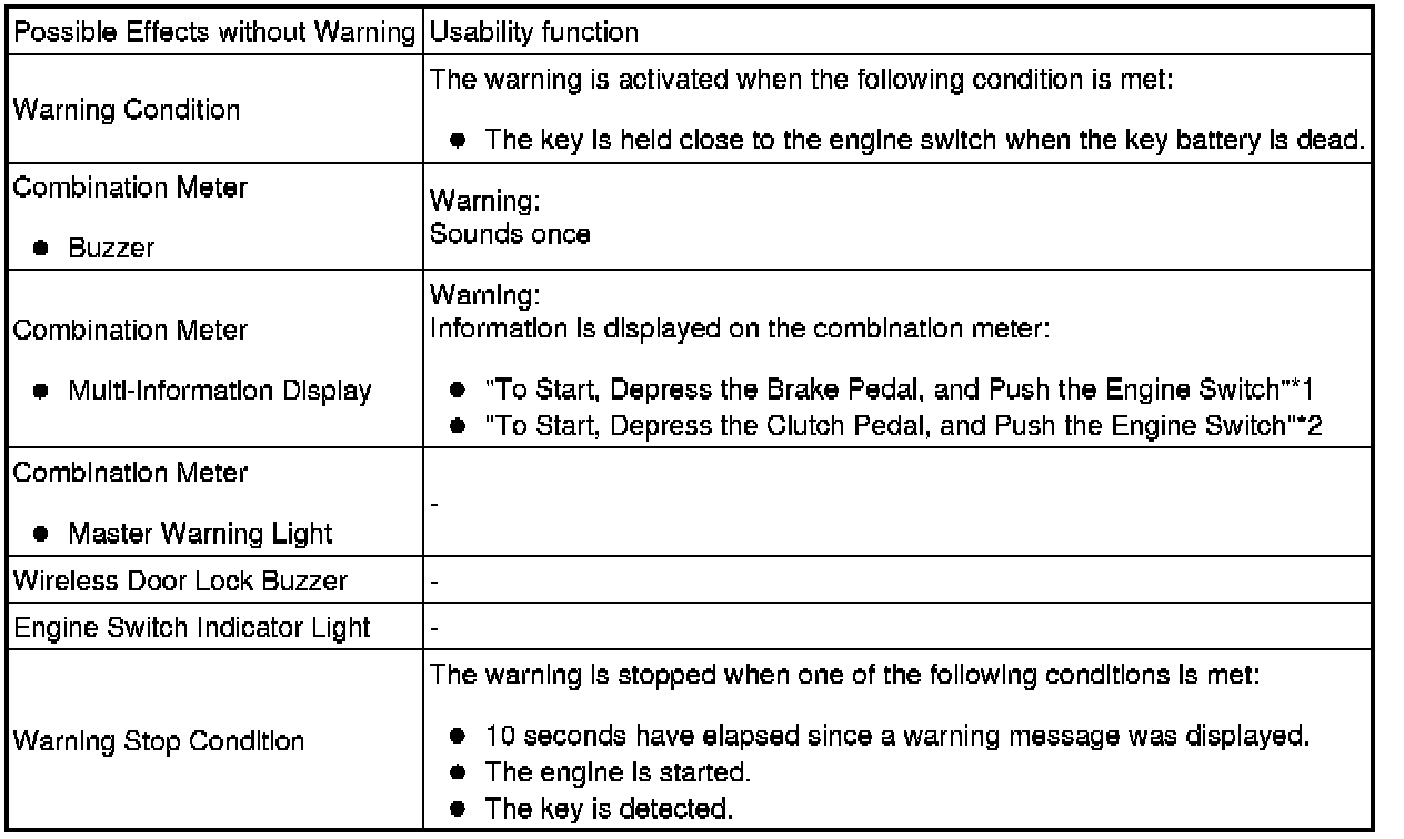 * Pattern 1: A warning message appears on the multi-information display when the driver does not follow the proper procedure to start the vehicle.