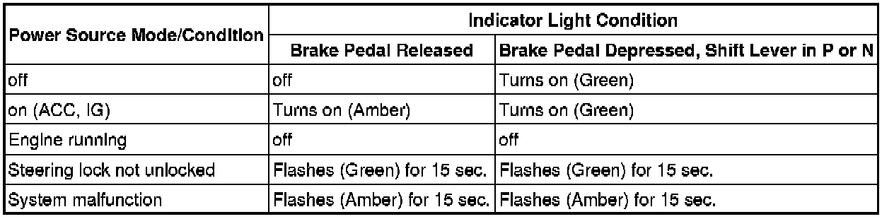 Engine Switch Indicator Light Condition for AT