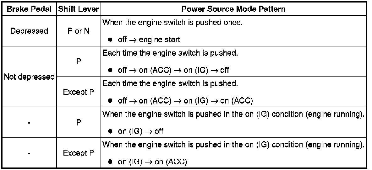 (a) This system has different power source mode patterns depending on the brake pedal condition and shift lever position.