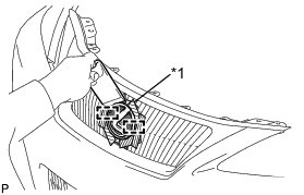 (d) Disengage the 8 claws and remove the radiator grille assembly.