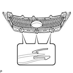 (a) Disengage the 12 claws and remove the lower radiator grille.