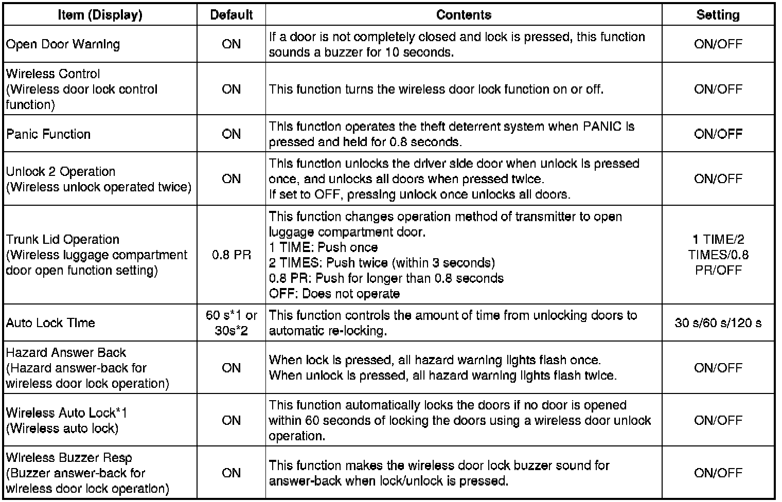 * Be sure to record the current settings before customization.