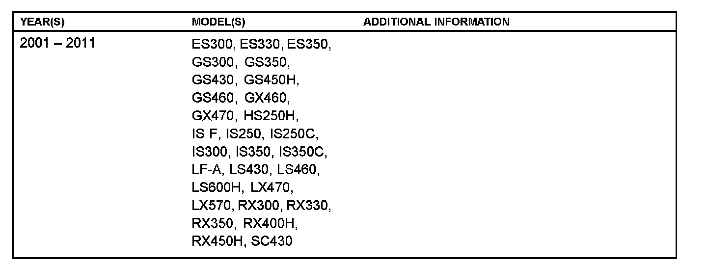 ^ Applicability has been updated to include 2009 - 2011 model year Lexus vehicles.