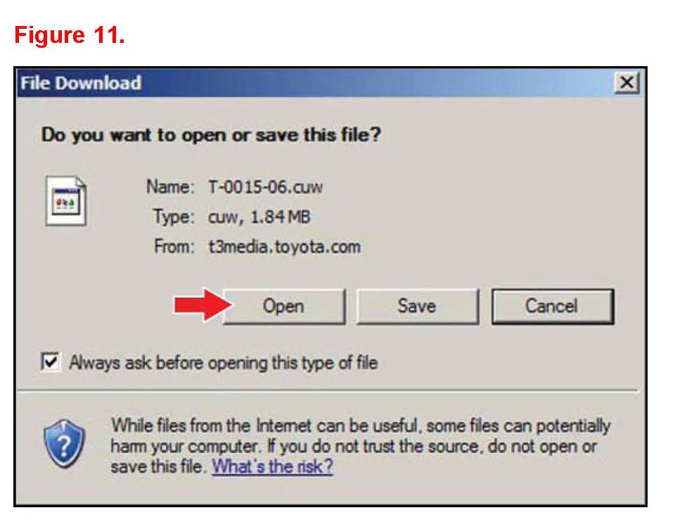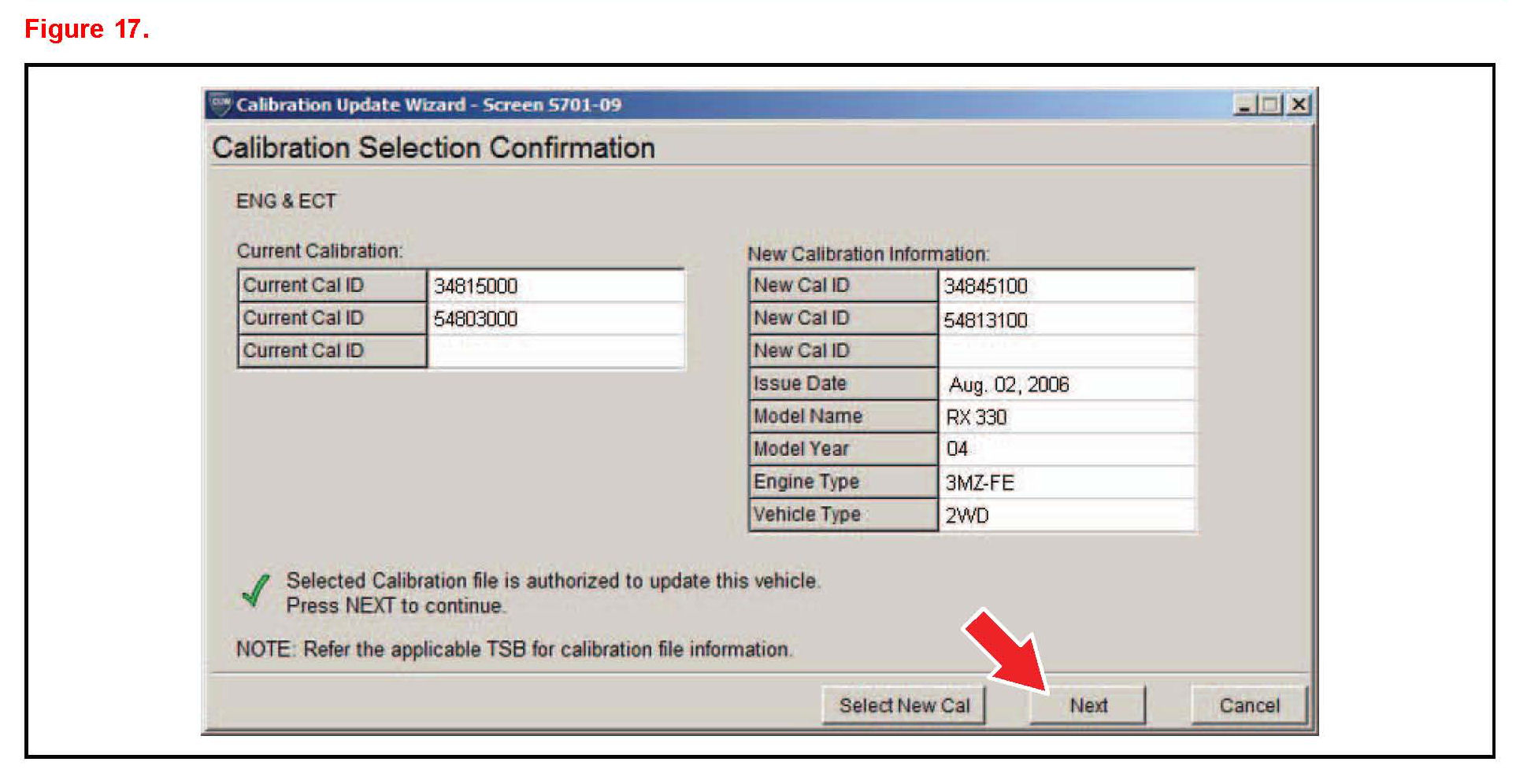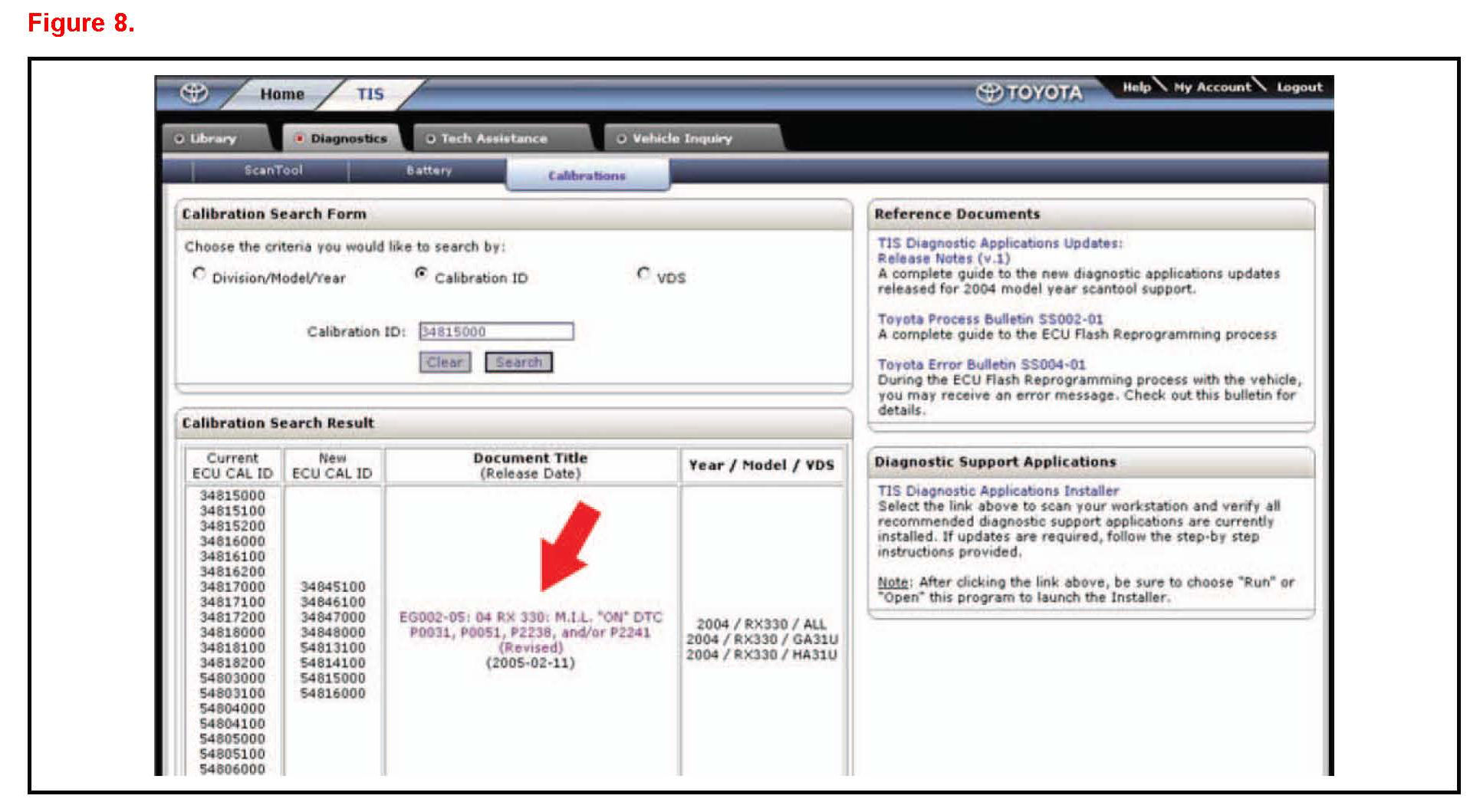Techstream will automatically search TIS for the appropriate service bulletin using the current Calibration ID from the vehicle. Calibration file links can be found embedded in the corresponding service bulletin.
